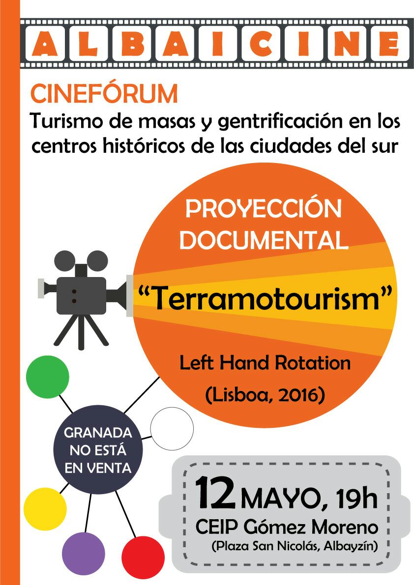 Esta sesión de cineforum albaicine (Turismo y gentrificación en los centros de las ciudades del sur) forma parte de "Granada no está en venta", movilización social por el derecho a la ciudad que continuará el próximo 19 de mayo con una manifestación (#LasCiudadesNoSeVenden).